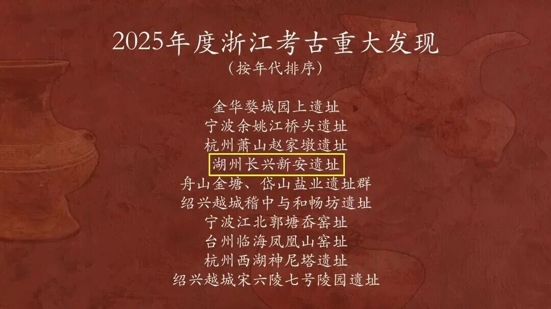 1月30日,由浙江省考古学会主办的浙江考古重要发现评选会评选出十项考古重大发现中浙大城市学院考古学系主持发掘的湖州长兴新安遗址从全省25个入围项目中脱颖而出,成功入选年度重大发现。